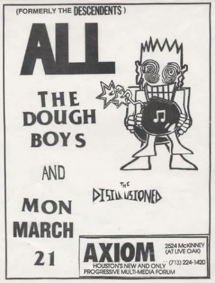 - 21/03/1988; Concert at The Axiom, Houston, TX, USA. with Doughboys & The Disillusioned.