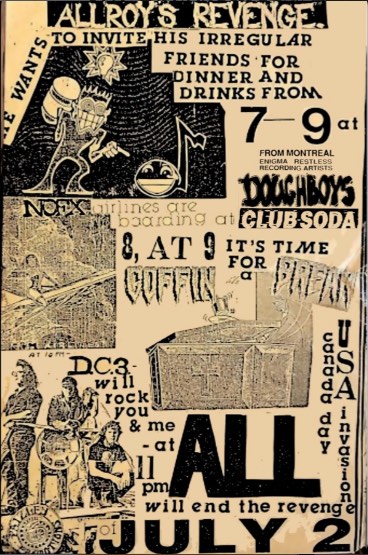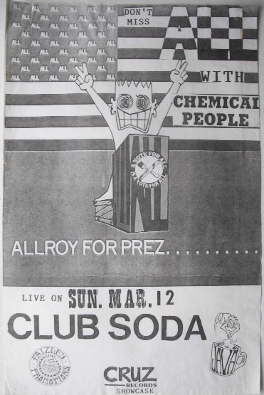 - 25/06/1988; Concert at Night Moves, Huntington Beach, CA, USA. with Big Drill Car, Chemical People & asst. (Jun. 25th - Aug. 20th; 'Allroy Wuz Here' Summer Tour).