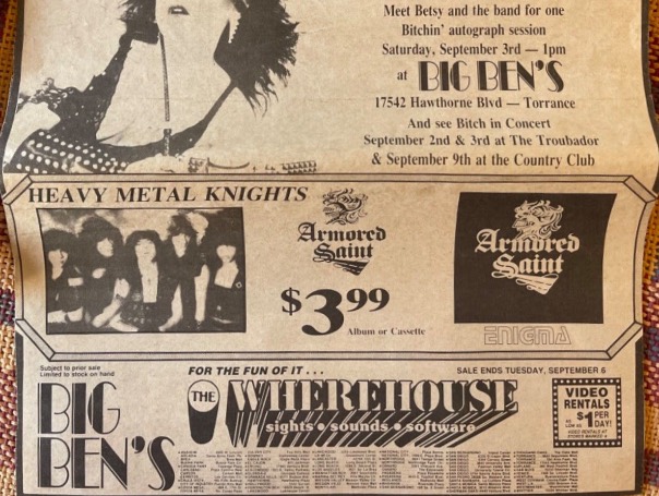 - 10/09/1983; In-Store-Appearance at 'Moby Disc Records', CA, with Bitch.