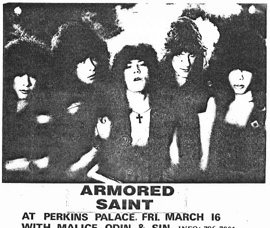 - ??/??/1982; Armored Saint form in Los Angeles early '82; John (v), Gonzo (d), Dave (g), Phil (g) and Mike (b).