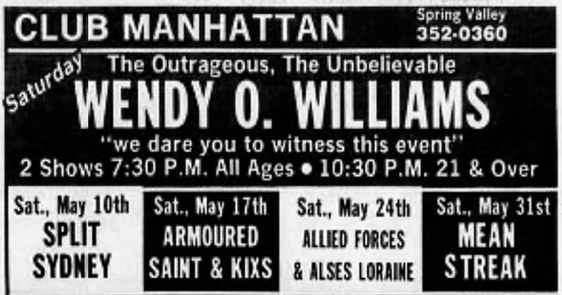 - 25/10/1991; Concert at The Class, Middletown, NY, USA. with Wrathchild America & Last Crack.