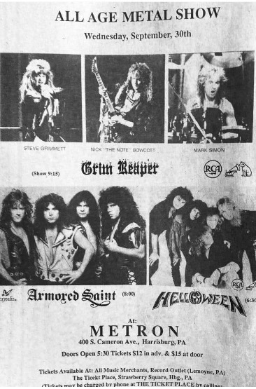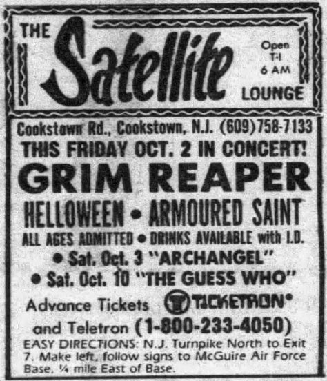 - 10/01/1985; Concert at The Skyway Club, Scotia, NY, USA. opening for Metallica & W.A.S.P. (Jan. 10th - Mar. 19th; 'March Of The Saint' tour 1985).
