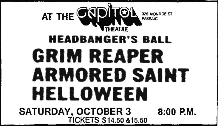 - 01/12/1984; Concert at The Capitol Theatre, Passaic, NJ, USA. opening for Quiet Riot.