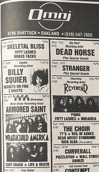 - 21/09/1991; Concert at The Omni, Oakland, CA, USA. with Wrathchild America, Last Crack & Life & Death.