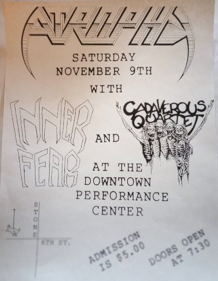 - 04/07/1988; Concert at Tucson Gardens, Tucson, AZ, USA. opening for Slayer, with Dover Trench & Aftermath.