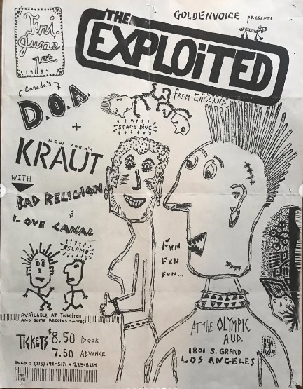 - 01/06/1984; Concert at The Olympic Auditorium, Los Angeles, CA, USA. opening for The Exploited, D.O.A. & Kraut.