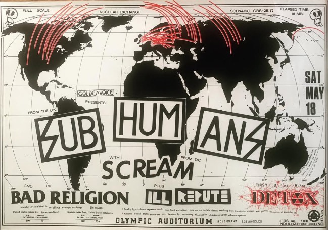 - 23/07/1982; Concert at Santa Monica Civic Auditorium, Santa Monica, CA, USA. opening for Circle Jerks, Bad Brains, Discharge & The Fartz.