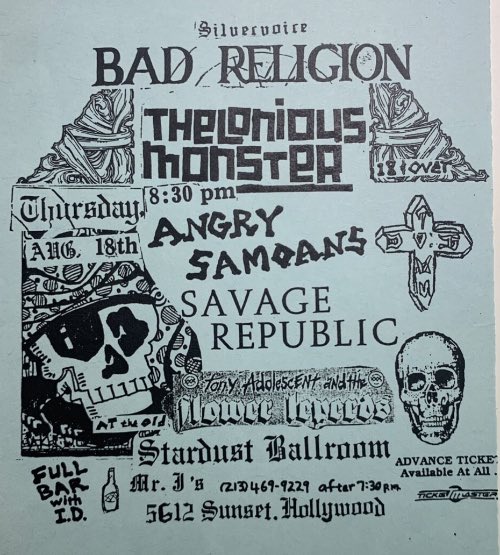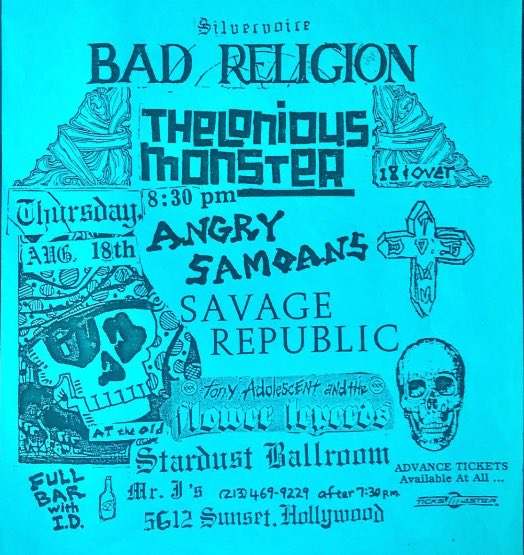 - 20/09/1985; Concert at Wabash Hall, San Diego, CA, USA. opening for Social Distortion, with asst.