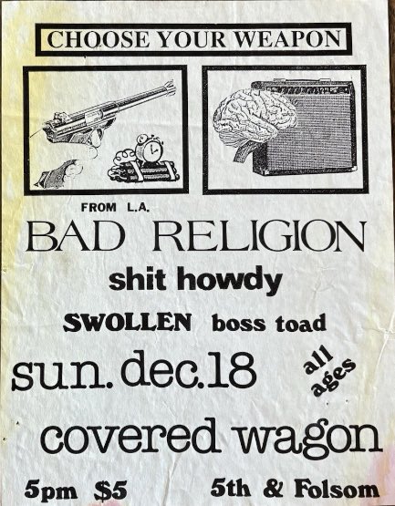 - ??/??/1980; Bad Religion form in Los Angeles mid-late 1980; Greg (v), Brett (g), Jay B. (b) and Jay Z. (d).
