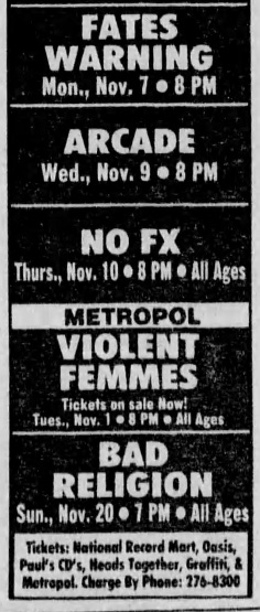 - 20/11/1994; Concert at Metropol, Pittsburgh, PA, USA. with Supersuckers & Samiam.