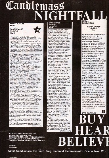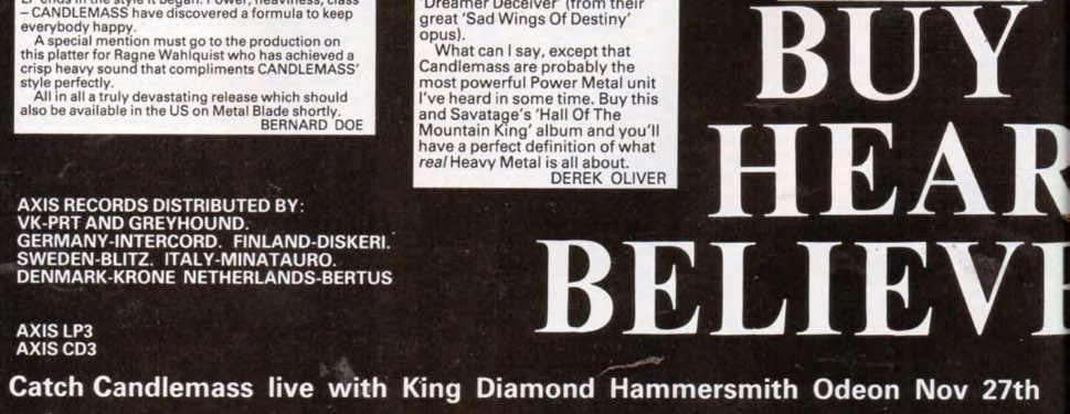 - ??/??/1985; Candlemass form from the ashes of Nemesis in late '85; Leif (b, v), Mappe (g) & Matz (d).