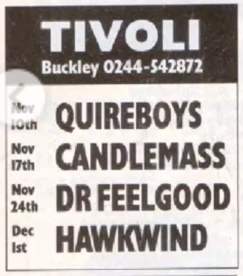 - 17/11/1988; Concert at The Tivoli, Buckley, England.