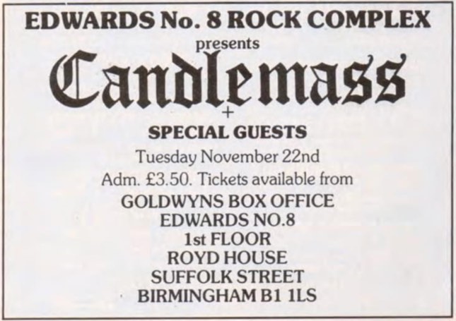 - 09/06/1990; Concert at Fryshuset, Stockholm, Sweden. with Mezzrow. released as the 'Candlemass - Live' album.