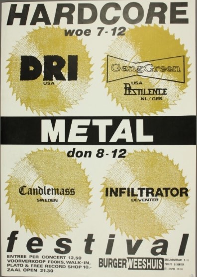 - 08/12/1988; Concert at Burgerweeshuis, Deventer, The Netherlands. with Infiltrator.