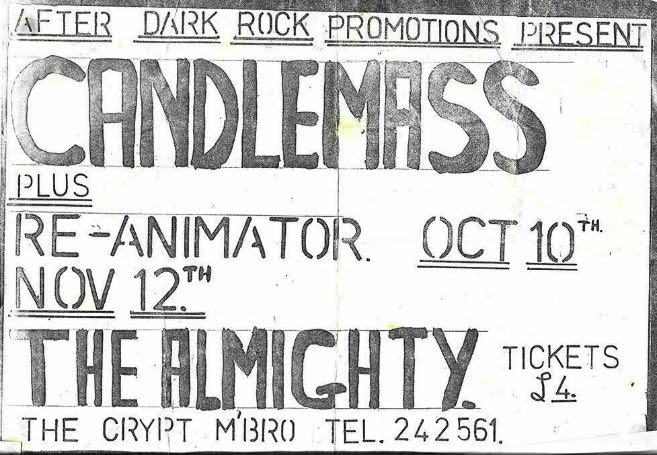 - 12/11/1988; Concert at The Crypt. Middlesborough, England. with Re-Animator.