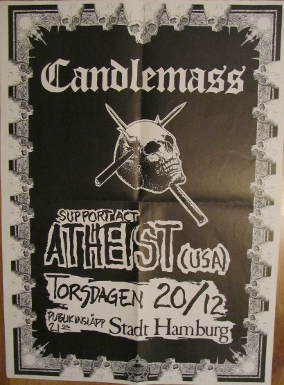 - 20/12/1990; Concert at Stadt Hamburg, Malmo, Sweden. with Athiest.