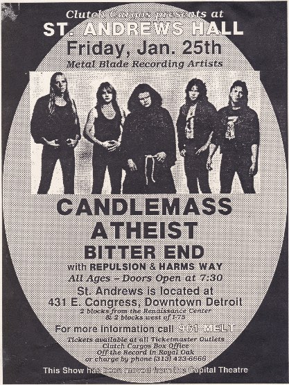 - 25/01/1991; Concert at St. Andrew's Hall, Detroit, MI, USA. with Atheist, Bitter End & Harms Way. (moved to Capitol Theatre, some flyers list 26th).