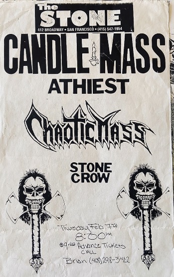 - 07/02/1991; Concert at The Stone, San Francisco, CA, USA. with Atheist, Chaotic Mass & Stone Crow.