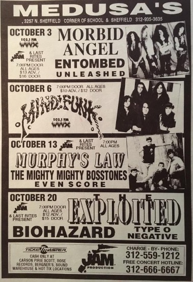 - 20/10/1991; Concert at Medusa's, Chicago, IL, USA. opening for The Exploited & Biohazard.
