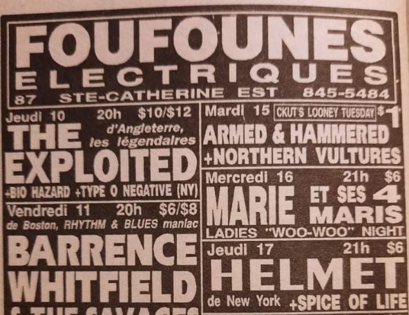 - 10/10/1991; Concert at Foufounes Electrique, Montreal, QC, Canada. opening for The Exploited & Biohazard.