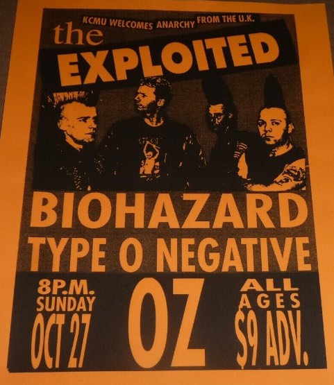 - 27/10/1991; Concert at The Oz, Seattle, WA, USA. opening for The Exploited & Biohazard.