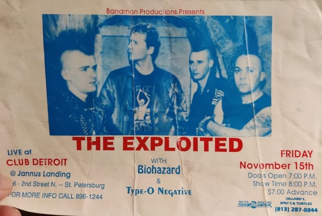 - 15/11/1991; Concert at Club Detroit, St. Petersburg, FL, USA. opening for The Exploited & Biohazard.