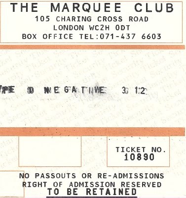 - 03/12/1991; Concert at The Marquee, London, England. with Pungent Stench. (Dec. 3rd - 22nd; 'Slow, Deep & Hard' European Tour).