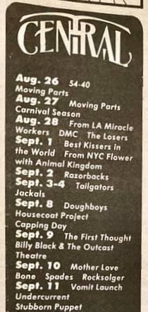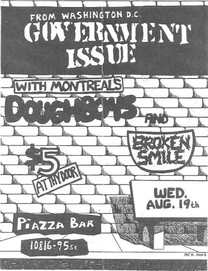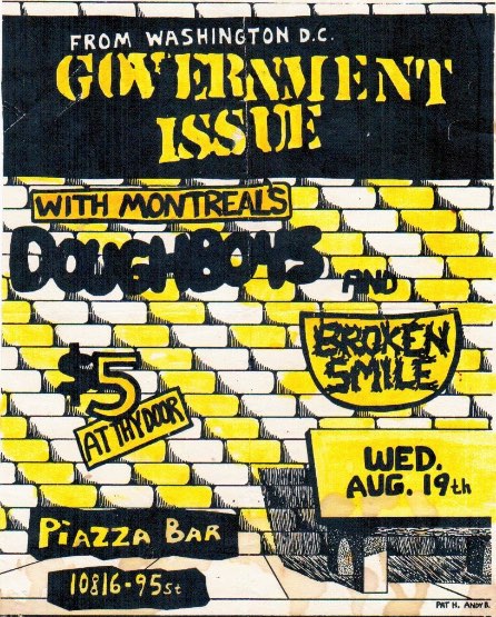 - 19/08/1987; Concert at The Piazza Bar, Edmonton, AB, Canada. opening for Government Issue, with Broken Smile.