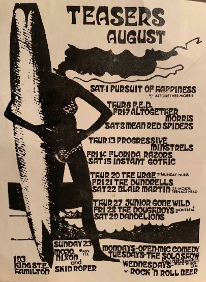 - 28/08/1987; Concert at Teasers, Hamilton, ON, Canada.
