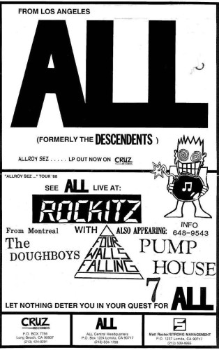 - 03/04/1988; Concert at Respectable St. Cafe, West Palm Beach, FL, USA. opening for ALL.