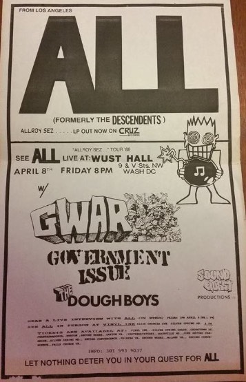 - 26/03/1988; Concert at The Metroplex, Atlanta, GA, USA. opening for ALL, with Porn Orchard.