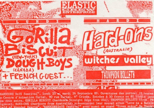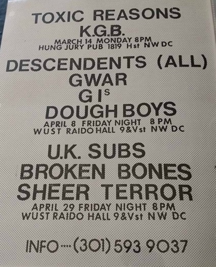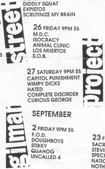 - 21/08/1987; Concert at Punk Douglas Club, Winnipeg, MB, Canada. opening for Government Issue, with asst.