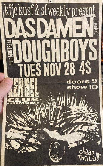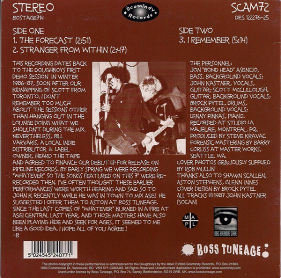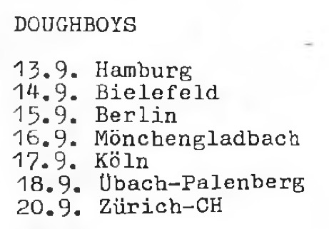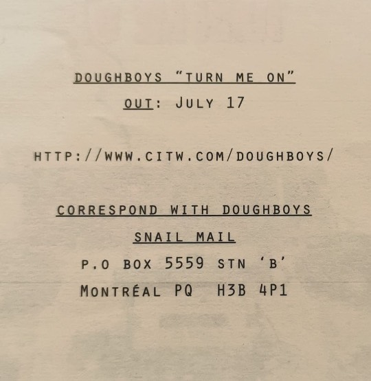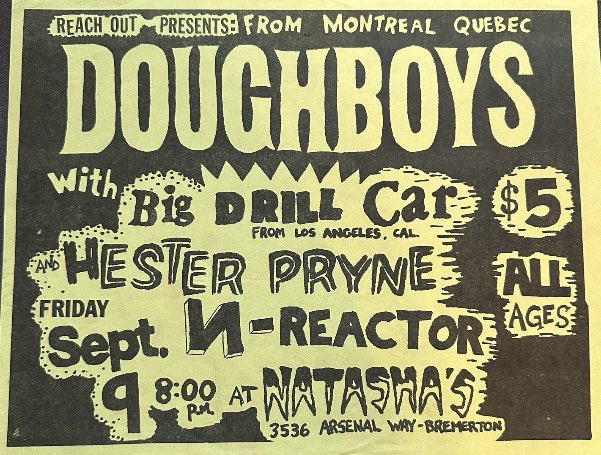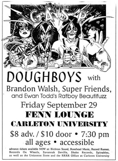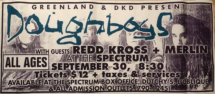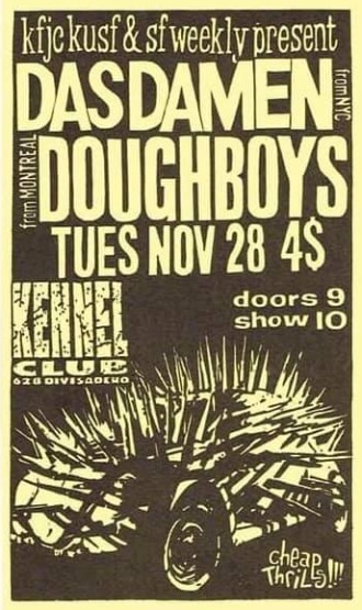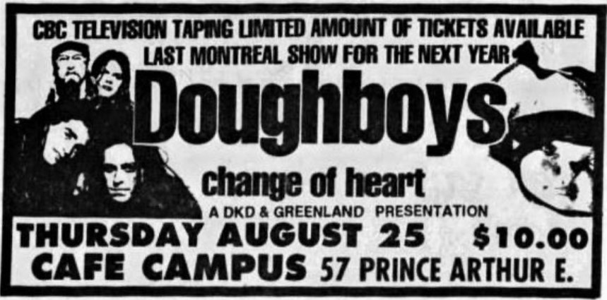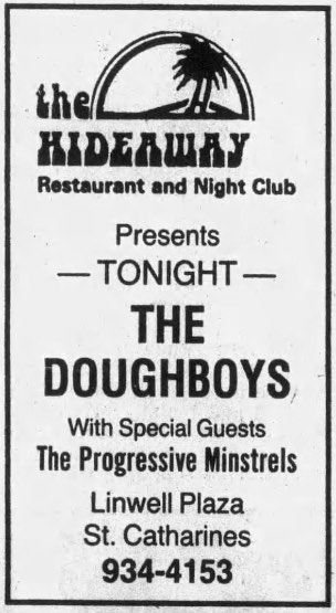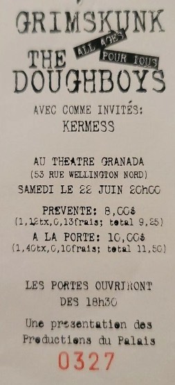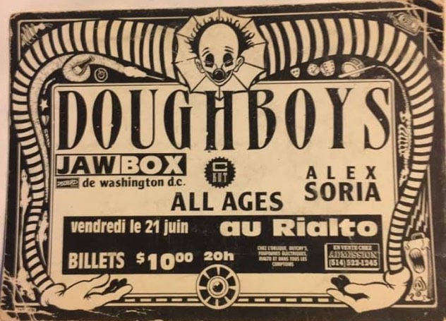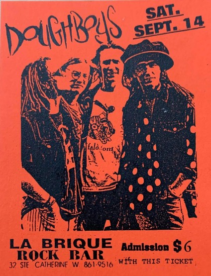 - ??/09/1986; Doughboys form in Montreal late '86, QC; John K. (v, g), Jonh B. (b), Brock (d) & Scott (g).