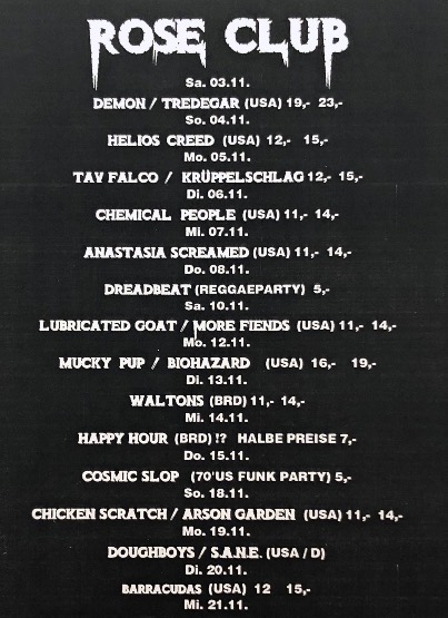 - 14/04/1994; Concert at Starclub, Dresden, Germany.
