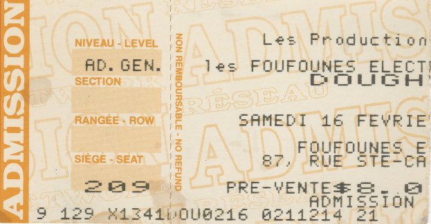 23/03/1994; Concert at Foufounes Electrique, Montreal, QC, Canada. opening for Green Day, with asst. (didn't play).