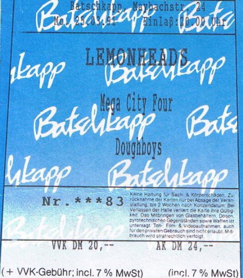 - 22/03/1994; Concert at Batschkapp, Frankfurt, Germany. opening for Therapy?.