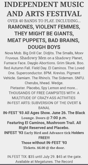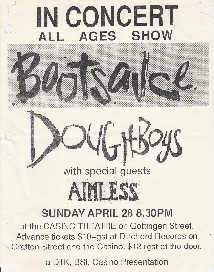- 03/03/1994; Concert at The Town Pump, Vancouver, BC, Canada. with Wheat Chiefs.