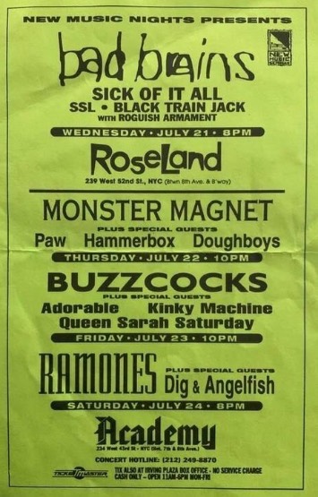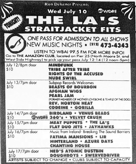 - 18/12/1993; Concert at The Stone Pony, Asbury Park, NJ, USA. opening for The Buzzcocks, with Fudge.