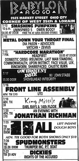 - 13/07/1987; Concert at First Avenue, Minneapolis, MN, USA. opening for Descendents & M.I.A.