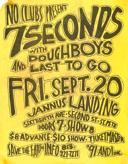 - 01/04/1988; Concert at Jannus Landing, St. Petersburg, FL, USA. opening for ALL & Agent Orange.