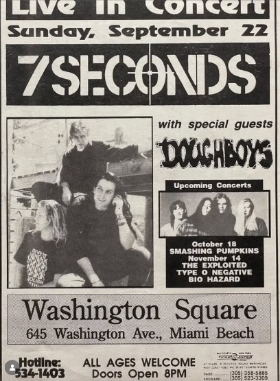 - 02/04/1988; Concert at The Cameo Theatre, Miami Beach, FL, USA. opening for ALL & Agent Orange, with Johnny Blade.