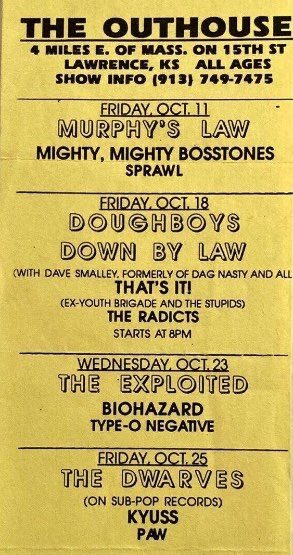 - 11/03/1988; Concert at The Mason Jar, Phoenix, AZ, USA. opening for ALL. (Mar. 11th - Apr. 23rd; 'Whatever' U.S. Tour Pt.2).