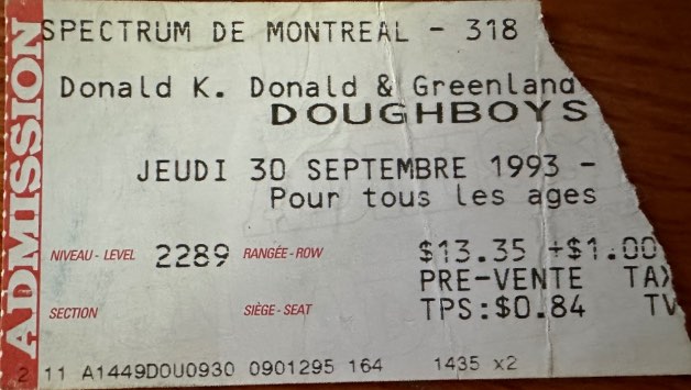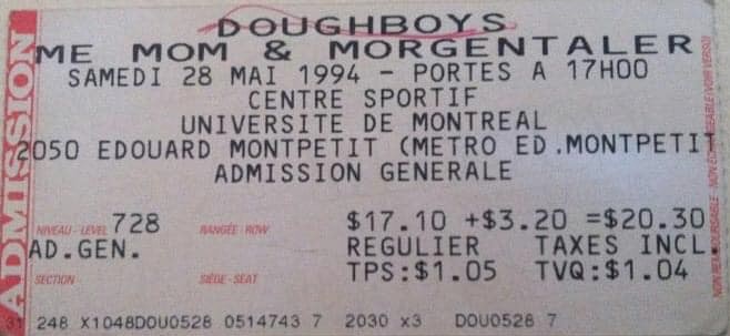 - 28/05/1994; Concert at Centre Sportif, Montreal, QC, Canada. with Me Mon, Morgantaler & Furnaceface.