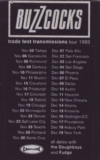 - 16/12/1993; Concert at The 9:30 Club, Washington, DC, USA. opening for The Buzzcocks, with Fudge.