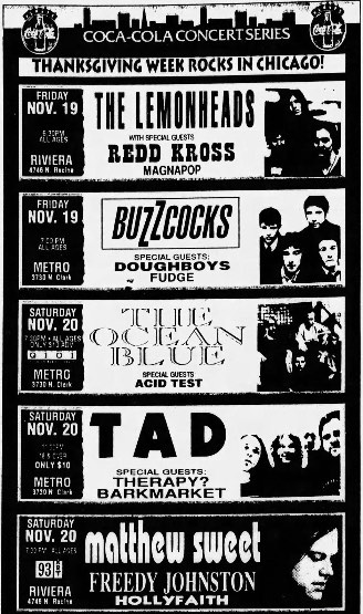 - 23/01/1994; Concert at The Metro, Chicagi, IL, USA. with Antenna & Nada.