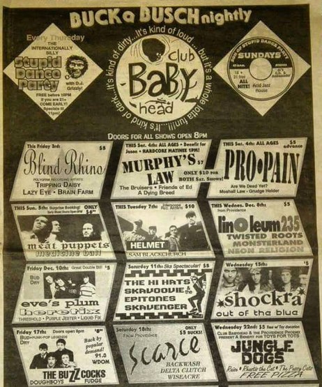 - 17/12/1993; Concert at Club Baby Head, Providence, RI, USA. opening for The Buzzcocks, with Fudge.