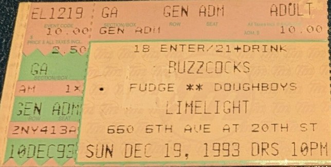 - 19/12/1993; Concert at The Limelight, New York, NY, USA. opening for The Buzzcocks, with Fudge.