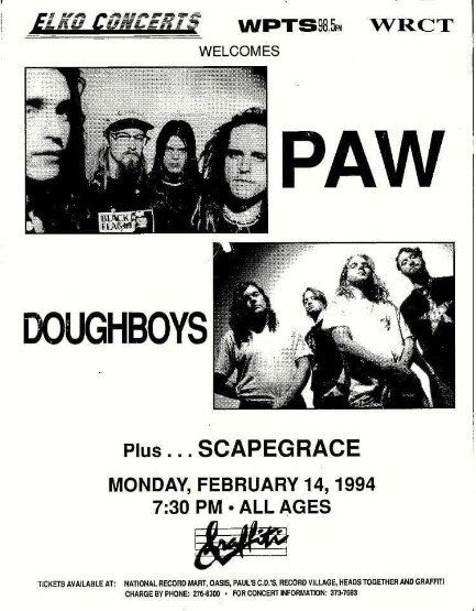 - 14/02/1994; Concert at Graffiti, Pittsburgh, PA, USA. opening for Paw, with Scapegrace.