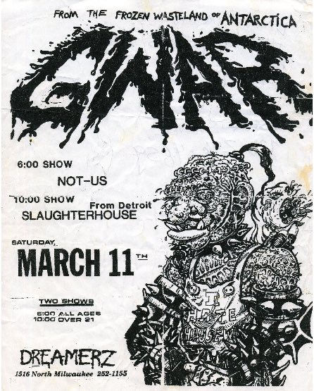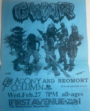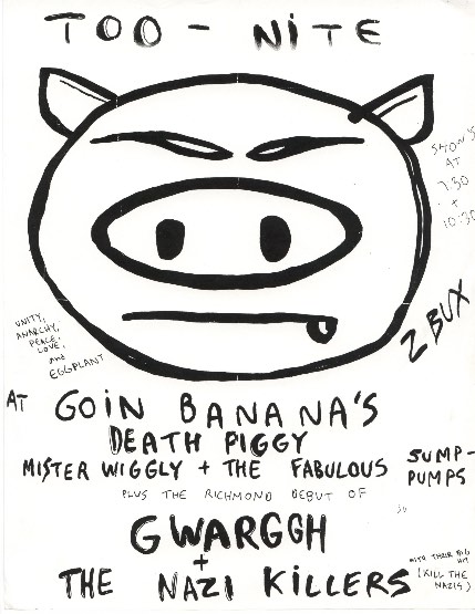 - 05/04/1985; Concert at Goin' Bananas, Richmond, VA, USA. opening for Death Piggy. (2nd show, as 'Gwaarggh').