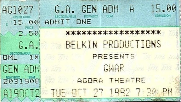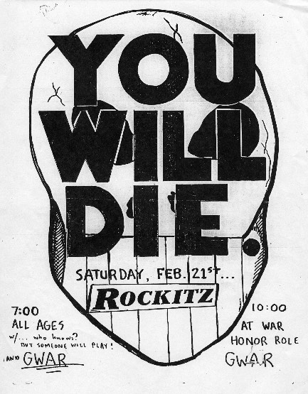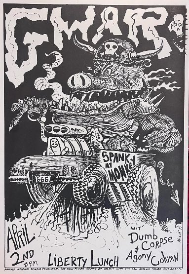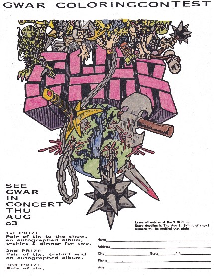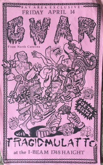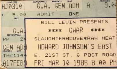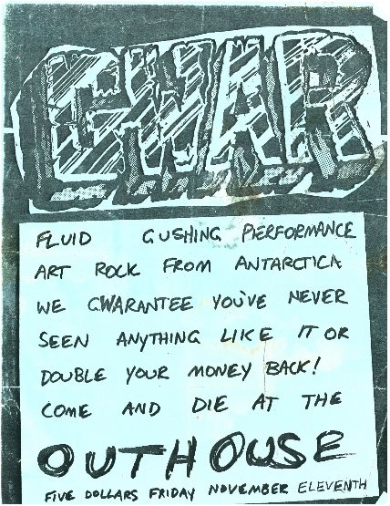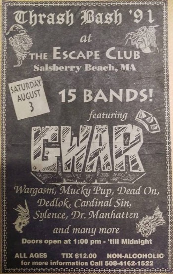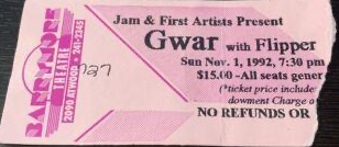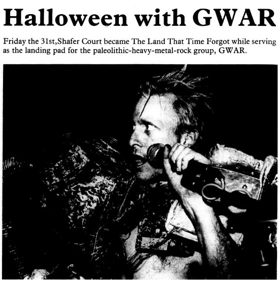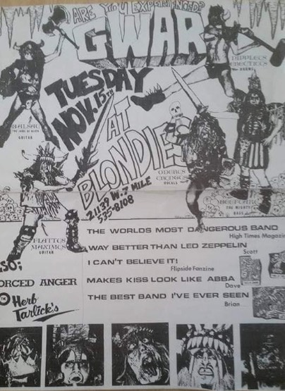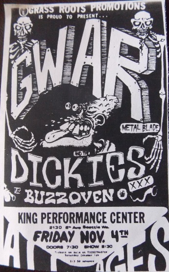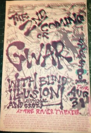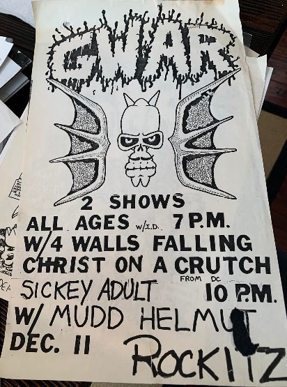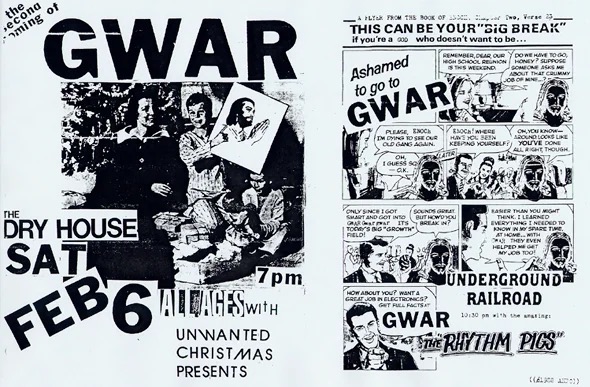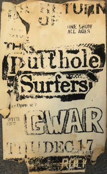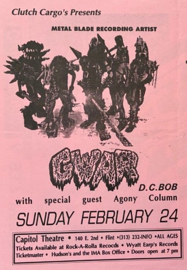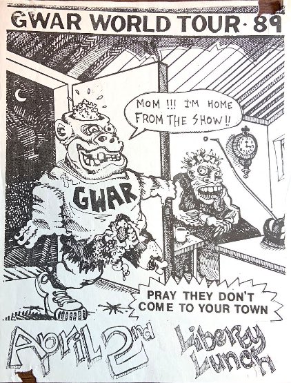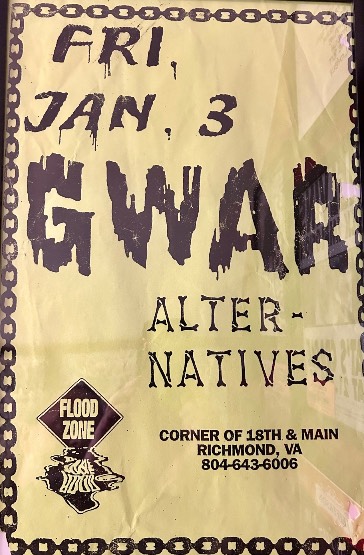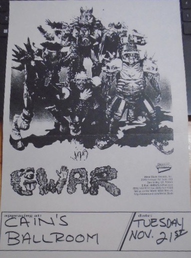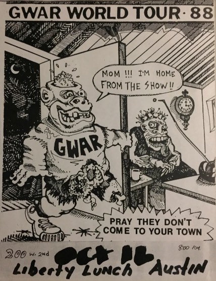 - 11/10/1985; Concert at P.B. Kellys, Richmond, VA, USA. opening for Death Piggy. (as 'Gwar' by now).